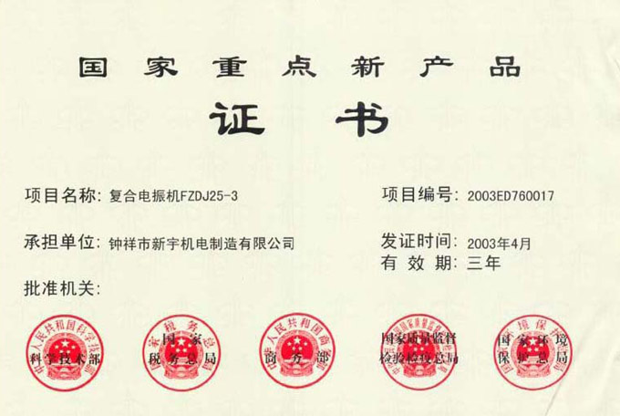 FZDC重点新产品证书