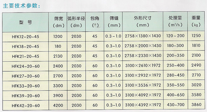 HFK型可翻转弧形筛主要特点: